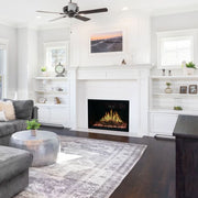 Discover the innovative Modern Flames Orion Traditional Electric Fireplace - 36", designed with the most authentic look and feel of a real fire from an electric fireplace. Whether it be in a commercial space, a hospitality venue, or even a residential space, the Orion Traditional Fireplace will deliver another level of realism. Using the included remote, built-in touch controls, or simply using the app, illuminate any gathering with this unit's elegant flames and adjustable ambient crackling sounds. The combination of lighting from the black reflective fire glass and multi-color lit log set make a luxurious atmosphere. The quality of the display remains consistent irrespective of your position thanks to the 32 1/8" W x 21 3/8" H viewing area and 5" deep ember bed.