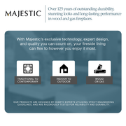 The Majestic Meridian 36 Direct Vent Gas Fireplace features advanced IntelliFire Touch technology, giving you full control over your fireside experience. Choose from multiple control options, including a touchscreen remote, voice commands, wireless wall switch, or the IntelliFire app, which is compatible with Amazon Alexa and Google Assistant. The dynamic thermostat automatically adjusts flame height to maintain your ideal temperature, while the Direct Vent Technology ensures that combustion exhaust is efficiently removed, keeping your indoor air clean and fresh.