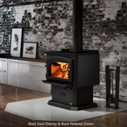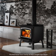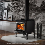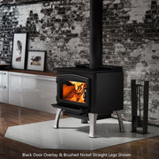 Customize your wood stove to fit your interior decor with the black and brushed nickel door overlay options, as well as the five different base options, available in three design styles. You can also add an optional fresh air intake kit and damper to control the amount of air drawn in from the outdoors, facilitating hotter flames and preventing the generation of cold drafts.